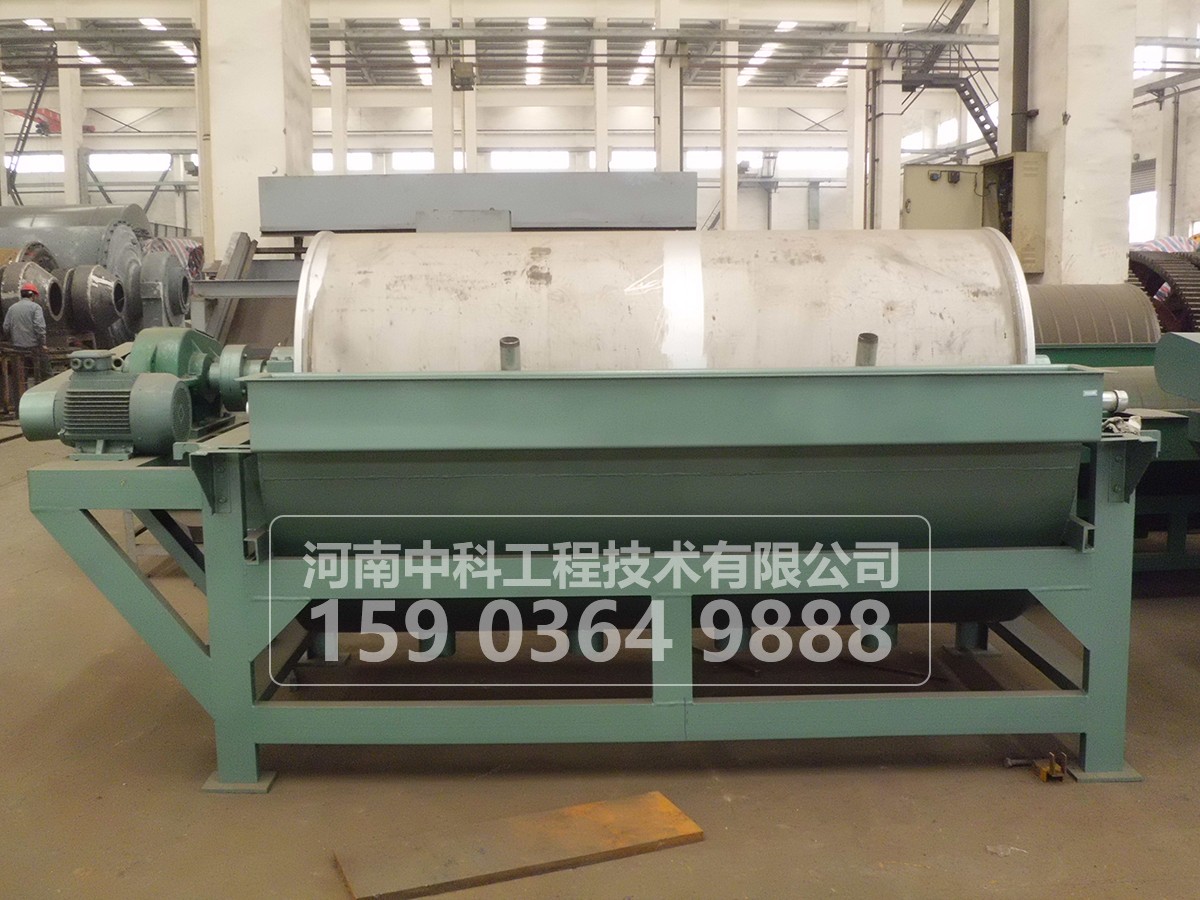 濕式永磁筒式磁選機(jī),本機(jī)廣泛用于選礦、洗煤和化工等部門,用于濕式選別粒度為6-0毫米的強(qiáng)磁性礦物,并將礦物分為磁性物及非磁性物兩種產(chǎn)品。它所選別的強(qiáng)磁性物的比磁化系數(shù)X應(yīng)不低于3000×106cm3/克,屬于這類礦物有磁鐵礦,磁黃鐵礦等,對(duì)于赤鐵礦、褐鐵礦、蕶鐵礦等須予選進(jìn)行磁化焙燒,方能進(jìn)行選別。